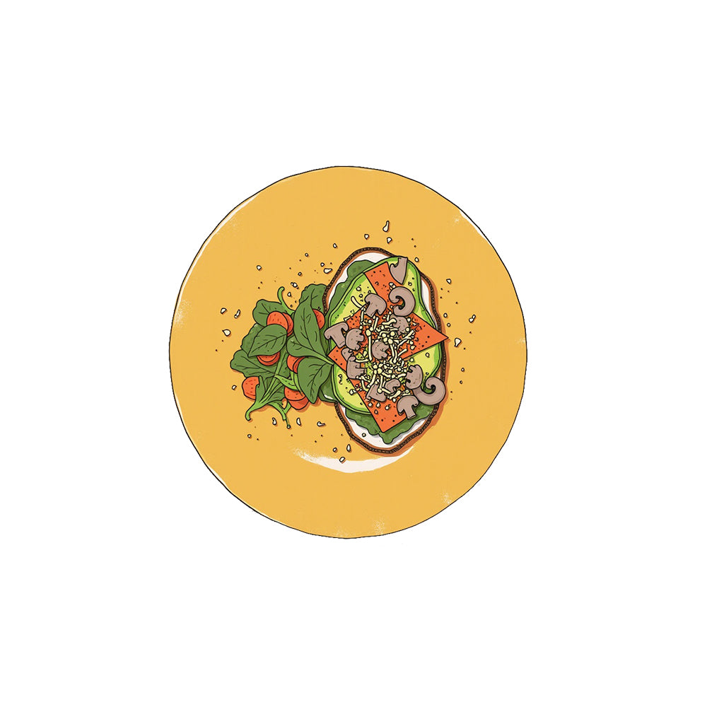 Unit price perSourdough Bread, Gucamole ,Tossed Seeds,Feta Mousse, Salad